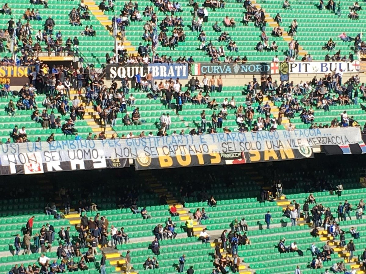 На игре 8 тура серии А «Интер» – «Кальяри» фанаты миланского «Интера» вывесили оскорбительный баннер в адрес форварда их клуба Мауро Икарди. «Ты не мужик. Ты не капитан. Ты кусок дерьма», — гласит надпись на баннере. Вероятно, поводом этому послужила история из биографии Мауро, которую он выпустил на неделе. Икарди написал, что однажды после матча подошёл к маленькому болельщику «Интера» и отдал ему футбола. После чего, по версии аргентинца, туда спустился фанат «Интера» и бросил футболку обратно в Икарди, а храбрый Мауро, якобы, вступился за ребёнка. Фанаты Нерадзурри уже назвали это полным вымыслом и попыткой очернить их. «С тобой все покончено.Ты показал себя. Снимай повязку, клоун», — гласит заявление на сайте Курвы Норд.